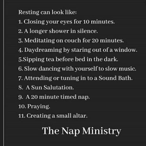 I’m copying all of this here to say: if this feels tough, you are not alone. So, what I offer here are not instructions toward “rest perfection” (ha ha!) but ideas, things that I have learned or begun to learn about rest and how to edge toward it. It probably won’t be a surprise that this topic of REST is also entangled with boundaries and self-compassion… it’s all connected.